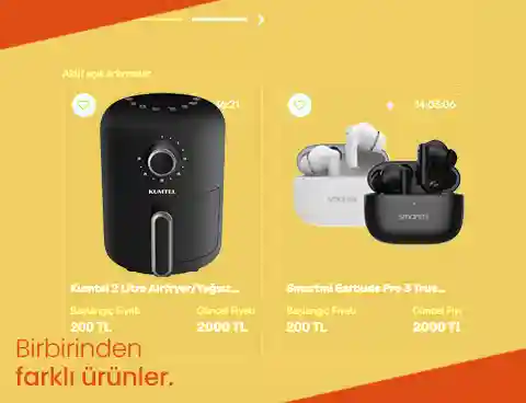 Şimdi hemen üye olun ve açık artırma dünyasına adım atın! Beğendiğiniz ürünleri favorilerinize ekleyin, teklif vererek en iyi fiyatları yakalayın ve kazandığınız ürünleri güvenle satın alın
